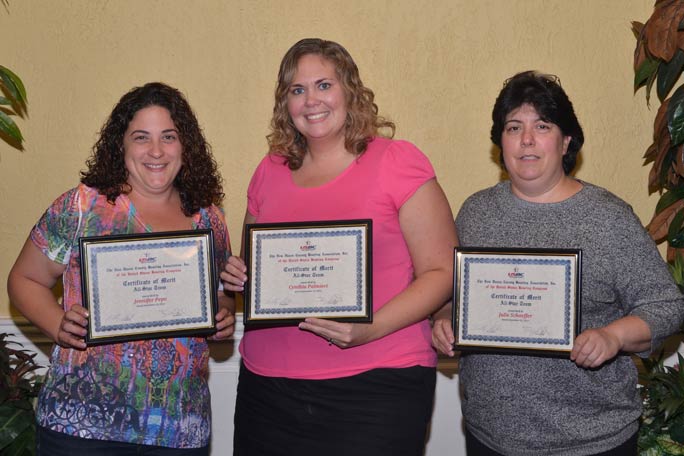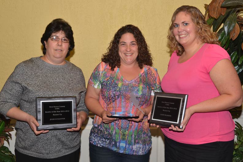- 2012 Bowler of the Year, Jenn Pepe, with Runners-Up Julie Schaeffer (left) and Cindy Palmieri (right)
